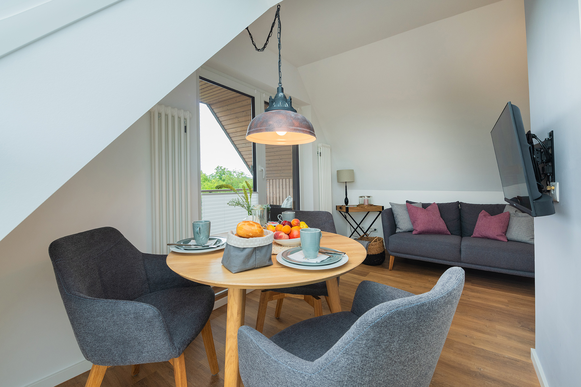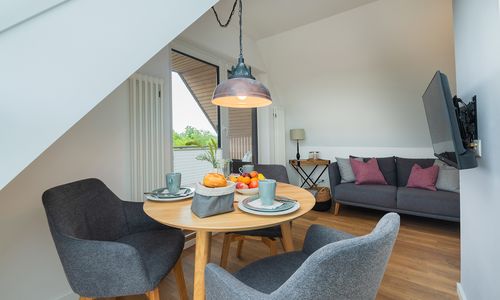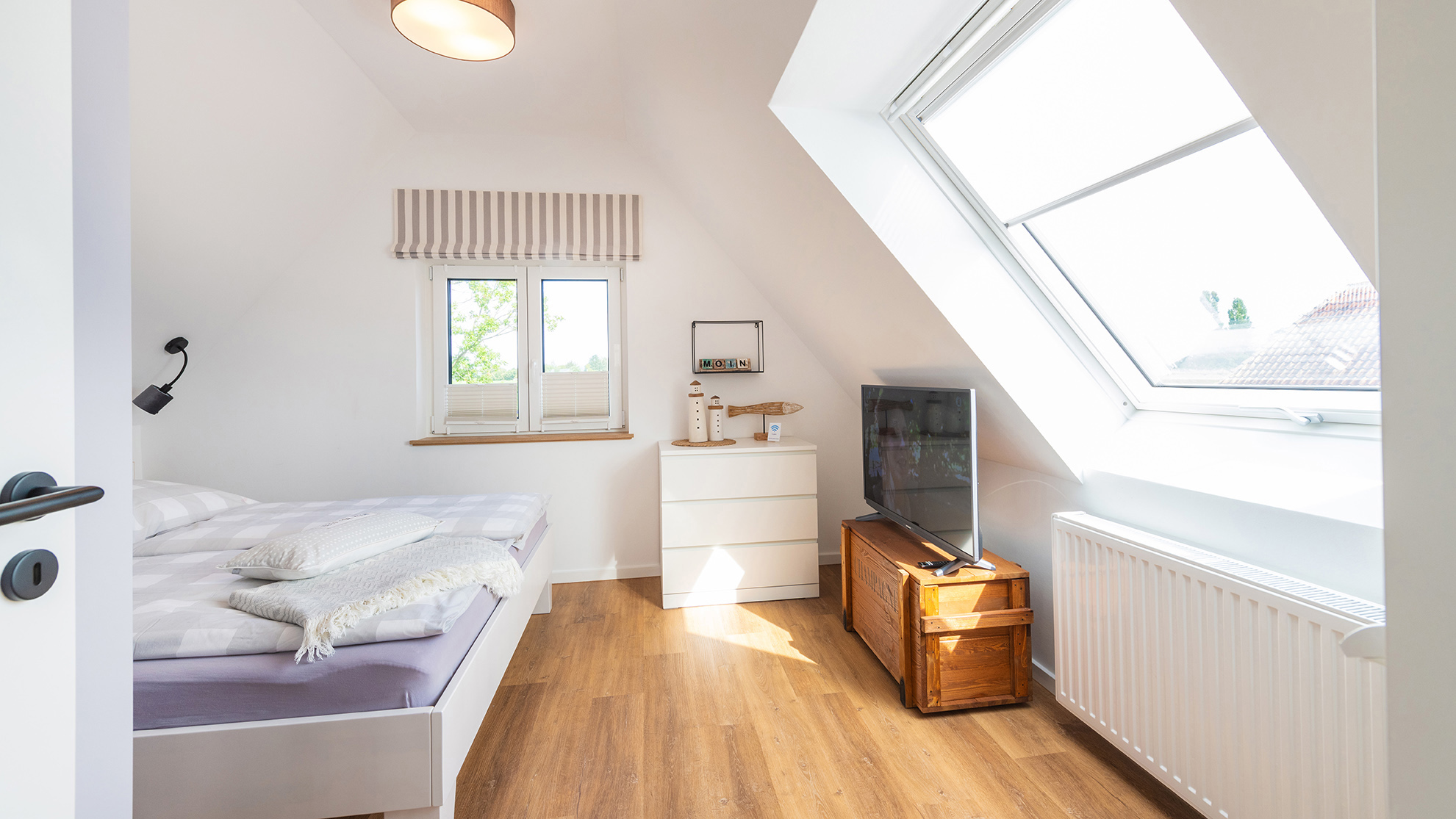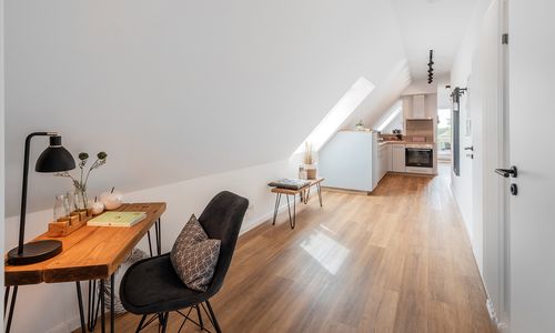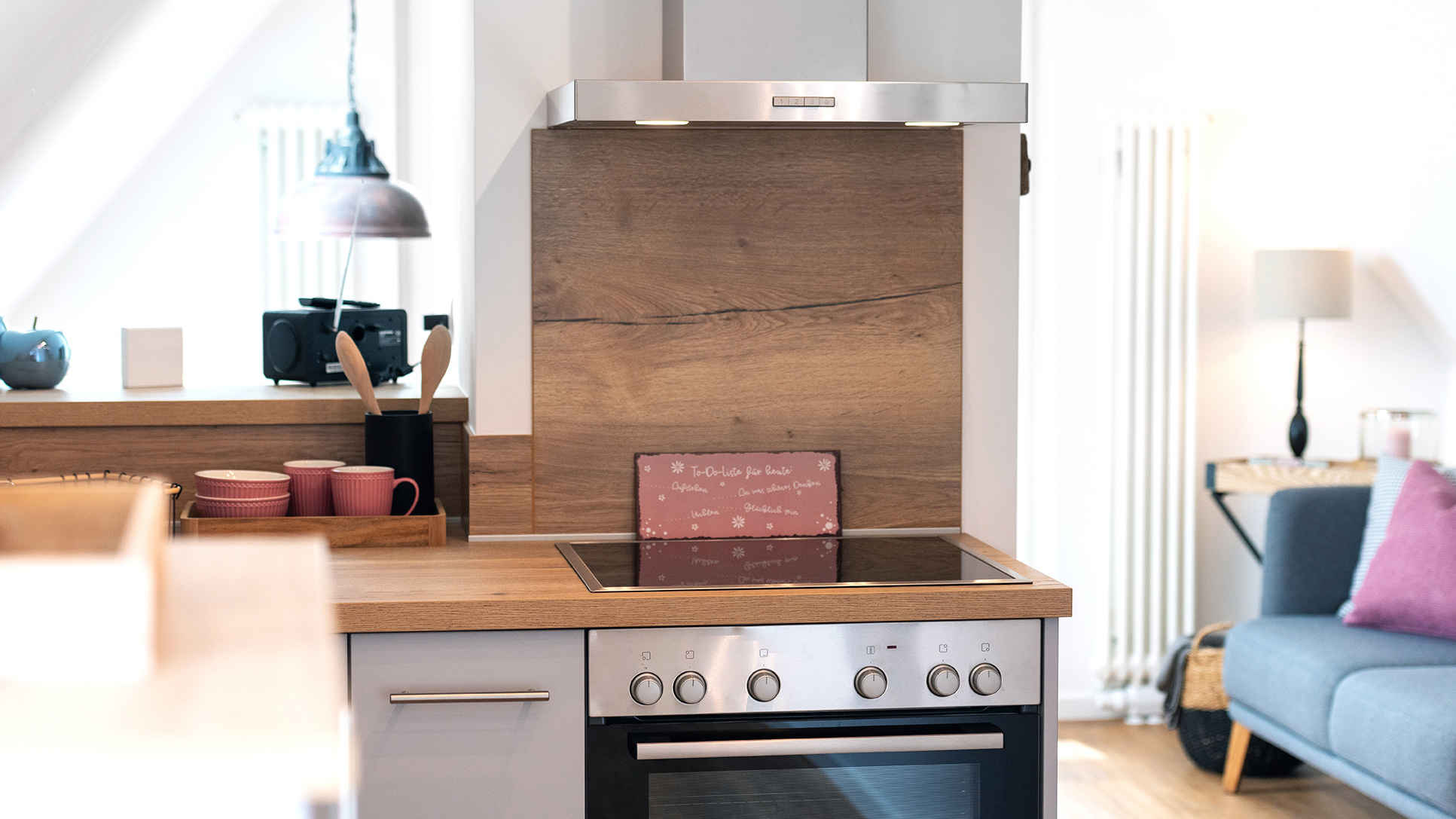Die neu eröffnete Wohnung "Nordlicht" ist im skandinavisch-maritimen Stil hell, modern und ansprechend eingerichtet. Hier fühlt man sich einfach wohl. Die komplett ausgestattete Küche verfügt neben einem Backofen zusätzlich über eine Spülmaschine.